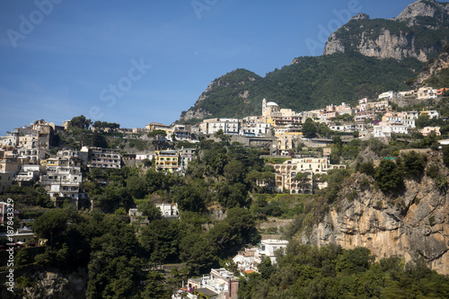 Fototapeta premium Panorama of Positano with houses climbing up the hill, Campania, Italy