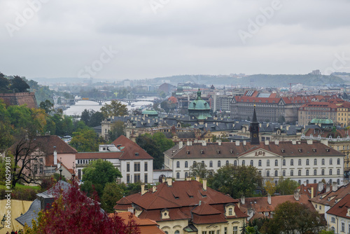© Natalia, Obraz premium Panorama of Prague. Cityscape of old city with river Vltava