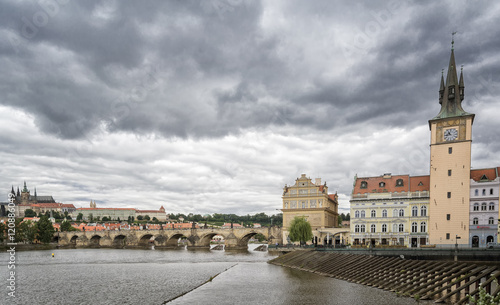 Obraz premium Panorama Of Prague On A Cloudy Day, Czech Republic