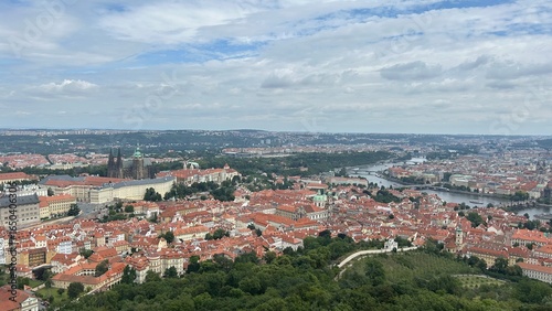 Obraz premium Panorama of Prague Skyline with Vltava River from Petřín Hill