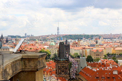 Fototapeta premium Panorama of Prague view of Charles bridge, on the bridge a crowd of people