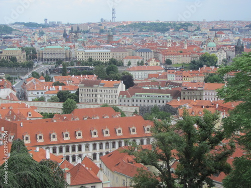 © HelenkaNNN, Fototapeta premium Panorama of Prague, view of the city roofs and domes of churches
