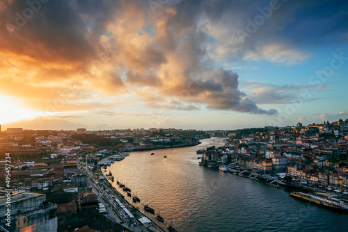 © Francesca Emer, Fototapeta premium panorama of ribeira in porto at sunset