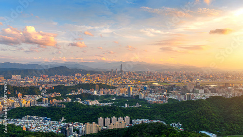 Fototapeta premium Panorama of Taipei city at sunset, Taiwan.