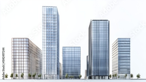 Fototapeta premium Panorama of tall office buildings with sleek architectural designs, isolated...