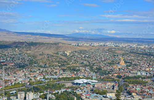 Fototapeta premium Panorama of Tbilisi, Georgia. Residential areas, the old churches and new...