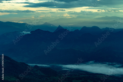© Bruno, Fototapeta premium Panorama of the Andes Mountains from the Cerro las Nubes, Mount of the Clouds, in Jerico, Jericó, Antioquia, Colombia. View on Cerro Tusa, Mount Tusa.