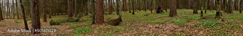 Obraz premium Panorama of the Bialowieza forest in the spring.Bialowieza National Park.