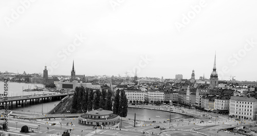 © morelena, Fototapeta premium Panorama of the city, black and white with yellow highlighting