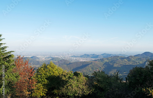 © Rita, Fototapeta premium Panorama of the Euganean Hills,Italy,05 November 2017,view from the mountain Madonna on the panorama of the Euganean hills,the beginning of November,in the distance a bluish haze of fog