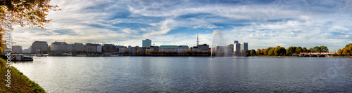 © DirkR, Naklejka premium Panorama of the Inner Alster with the Alster Fountain in Hamburg, Germany.
