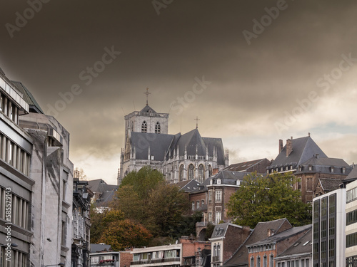 Fototapeta premium Panorama of the Liege Cathedral, the Cathedrale Saint Paul de Liege, in...