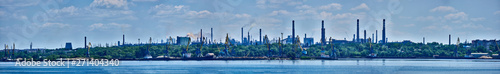© Serhii, Naklejka premium Panorama of the port and the factory industrial area with many pipes with smoke