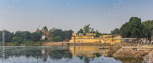 Naklejka premium Panorama of the Shivasagar lake in Khajuraho, India