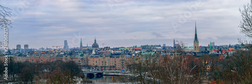 Fototapeta premium Panorama of the Strandvagen Street on Ostermalm district seen from Djurgarden...
