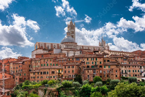 Obraz premium panorama of Tuscany town, Italy, with vivid colors and beautiful clowds on blue sky