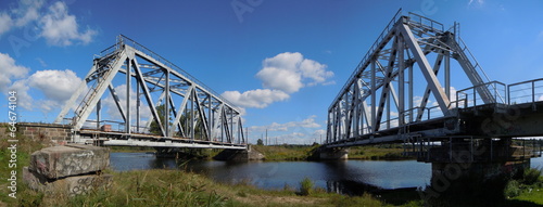 © Juulijs, Fototapeta premium Panorama of two railway bridges (Riga, Latvia)
