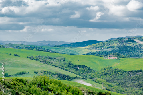 Fototapeta premium Panorama of Volterra's lands and hills in the spring