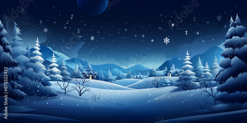 © serperm73, Fototapeta premium Panorama of winter evening forest. Congratulatory, New Year or Christmas background.