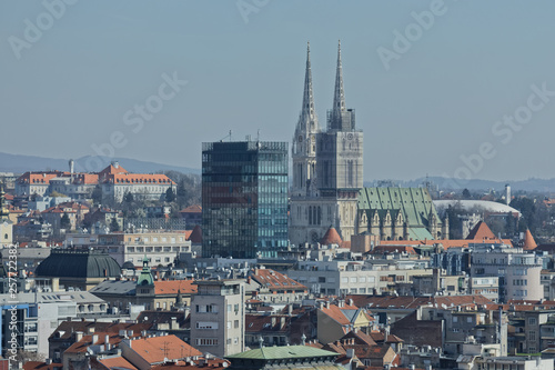 © Dario Bajurin, Naklejka premium Panorama of Zagreb with cathedral