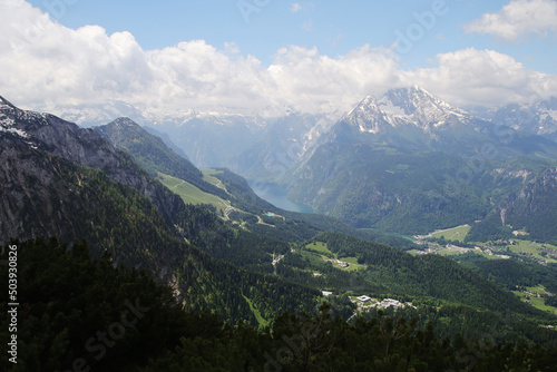 © nastyakamysheva, Obraz premium Panorama opening from Kehlstain mountain, the Bavarian Alps, Germany
