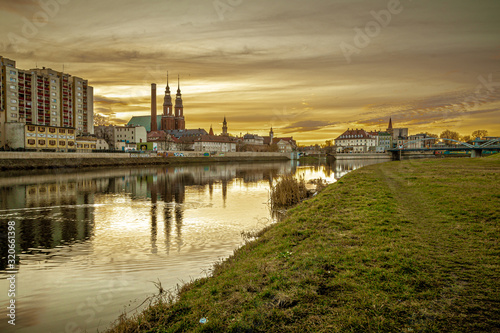 © Henryk Niestrój, Fototapeta premium panorama Opola z katedrą, ratuszem nad Odrą