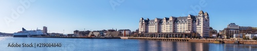 © basiczto, Fototapeta premium Panorama Oslo city skyline and government building office in summer day Norway