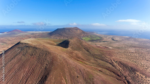 Fototapeta premium Panorama over volcanic mountains in Lanzarote, Canary Islands, Spain, aerial view .