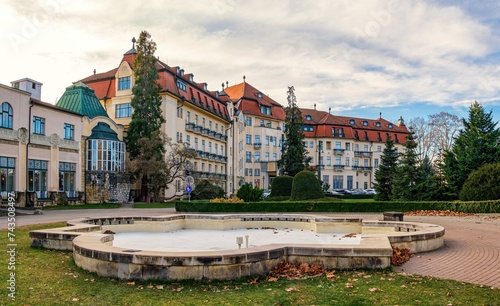 © Ivan, Naklejka premium Panorama Piestany the Spa Island. Thermal springs with healing water, treatment of the musculoskeletal system, health balneotherapy, peloid, heat therapy. Europe, Slovakia