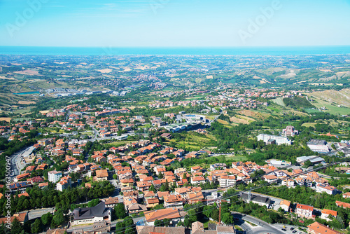 Fototapeta premium Panorama Republiki San Marino i Włoch z Monte Titano, miasta San Marino....
