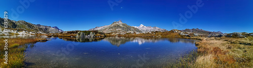 Naklejka premium panorama scenery of the swiss alps. Lake at the top of grimsel p
