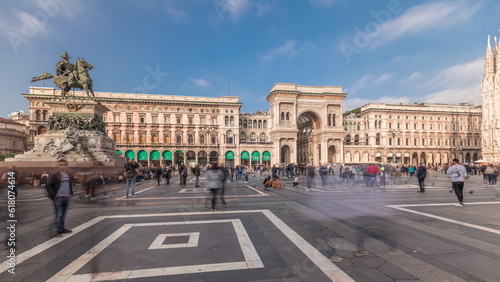 Obraz premium Panorama showing Milan Cathedral and Vittorio Emanuele gallery timelapse.