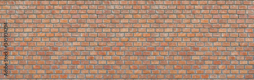 Fototapeta premium panorama Structural red Brick Wall. Panoramic Solid Surface. stone background. brick wall texture background wild and high resolution phot