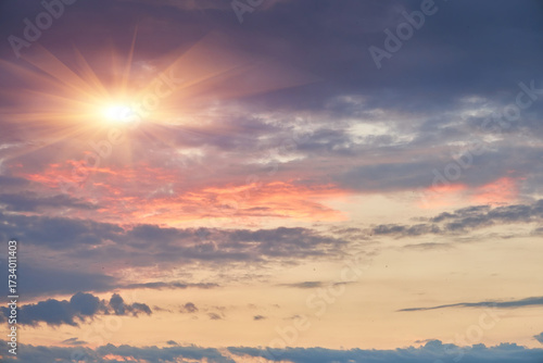 © Ryzhkov Oleksandr, Fototapeta premium Panorama sunset sky for background or sunrise sky and cloud