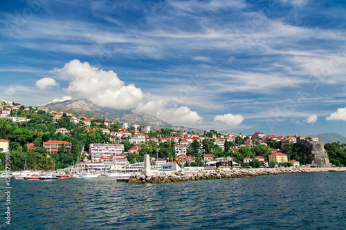 © Ivan Kurmyshov, Naklejka premium Panorama view at Herceg Novi city and high mountain, Montenegro