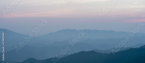 © tickcharoen04, Obraz premium panorama view layer of mountain with sunrise background