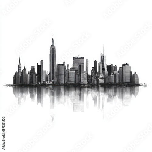 © Rock, Naklejka premium Panorama view Manhattan on white background.