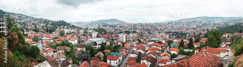 Obraz premium Panorama view of capital city of Bosnia and Herzegovina, Sarajevo in foggy...