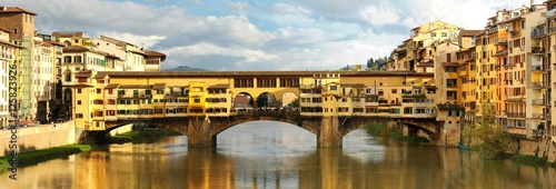 © Dan74, Naklejka premium Panorama view of Ponte Vecchio over Arno river in Florence, Italy