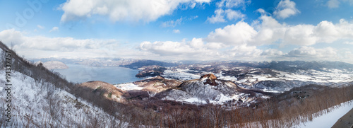 © ThamKC, Fototapeta premium Panorama view of Showa Shinzan from Mount Usu or Usuzan
