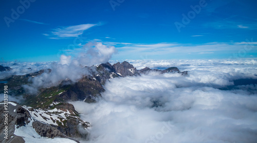 © JuanFernandoVelez, Naklejka premium Panorama view of the Alps from the top of Titlis Mountain in Switzerland