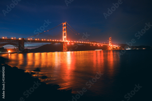 © Jose Vela, Fototapeta premium Panorama view of the Golden Gate Bridge at night