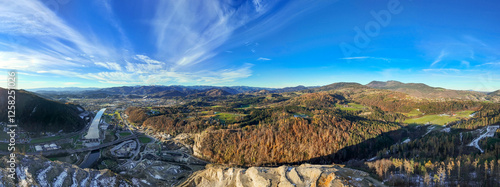 © Photofex, Naklejka premium Panorama view of the region north of Graz, Austria with the stone pit Kanzelsteinbruch and the towns Judendorf, Gratwein and Gratkorn