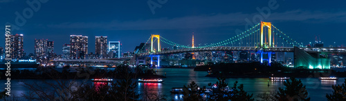 Naklejka premium panorama view of Tokyo Tower skyline and Rainbow Bridge with cityscape at...