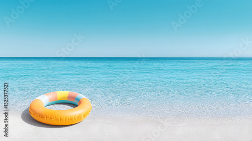 © fadi, Naklejka premium Panorama view on beautiful sunset and tropical beach. Relaxation and calmness beach holiday, resort or hotel. Summer vacation on tropical beach landscape