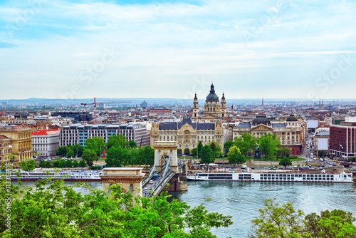 Fototapeta premium Panorama View on Budapest city from Fisherman Bastion. Hungary.