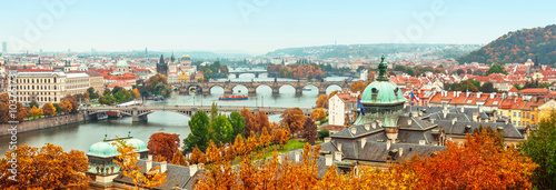 © Yasonya, Obraz premium Panorama view to vltava river in prague
