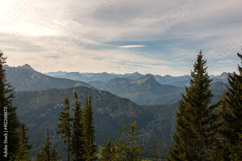 © Stephan, Fototapeta premium Panorama vom Gipfel Edelsberg auf die Allgäuer Alpen Bergwelt