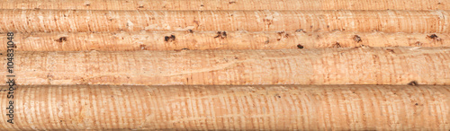 Fototapeta premium Panorama von geschälten horizontalen Baumstämmen