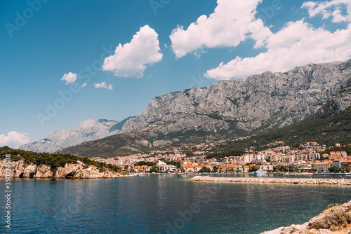 Naklejka premium Panorama wakacyjnego miasta, Makarska